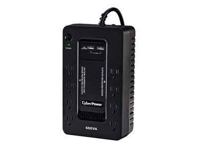 The CyberPower SX650U uninterruptible power supply (UPS) system provides surge protection for lightning-induced surges and other power events that can damage electronic equipment. This unit delivers enough battery backup to connected electronics during a utility power failure, so you can perform a graceful shutdown to protect against the loss of data and damage to valuable electronics including computers, gaming consoles, and broadband routers.