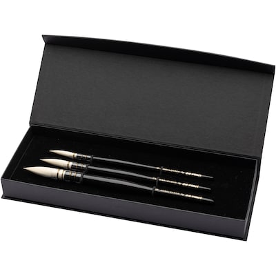 Features a new "wavy" fiber developed by da Vinci that allows for high color absorption and a soft feel while still coming to a perfect point or edge. Generously sized and hand shaped, its unique point allows for full strokes across the paper, while coming back to a perfect point. The Quill round is excellent for watercolor, gouache, acrylic, silk painting, calligraphy and ink and sketching. CASANEO is the favorite brush of the Urban Sketchers movement. Made in Germany, certified green manufacturing with sustainable wood handles from European forests.