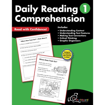 In this reading comprehension workbook, each reading passage encourages students to read with a purpose. Follow-up questions emphasize critical thinking, making text connections, inferencing, and synthesizing what students have read. Graphic organizers for extended learning and an assessment rubric for success criteria are also included. Features ready-to-go, reproducible activities! Skills covered in this workbook: Understanding Context, Understanding Text Features, Making Text Connections, Critical Thinking, Graphic Organizers. About this workbook: Designed for teachers with parents in mind, this workbook is perfect for the classroom and for home! It promotes student confidence, learning, and success and offers the ideal supplement to enhance or enrich any curriculum. This must-have reading comprehension workbook: Includes manageable activities that reinforce essential skills and concepts, Meets standards and cover curriculum efficiently and effectively, Provides a consistent, clear approach, 120 pages. 1st Grade