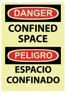 The Danger, Confined Space, Bilingual, 14X10, Adhesive Glow Vinyl by National Marker is the perfect solution for all of your Caution & Hazard Signs Needs.