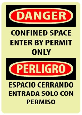 The Danger, Confined Space Enter By Permit Only, Bilingual, 14X10, Adhesive Glo Vinyl by National Marker is the perfect solution for all of your Caution & Hazard Signs Needs.