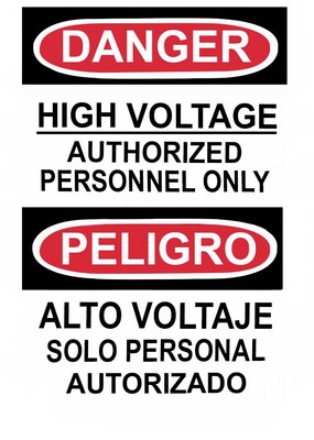 Danger, High Voltage Authorized Personnel Only, Bilingual, 14X10, Adhesive Glo Vinyl
