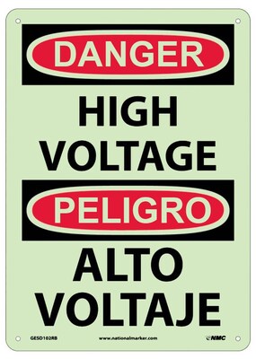 The Danger, High Voltage, Bilingual, 14X10, Adhesive Glo Vinyl by National Marker is the perfect solution for all of your Caution & Hazard Signs Needs.