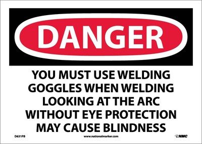 Danger Signs; You Must Use Welding Goggles When Welding Looking At The Arc Without Eye Protection (D631PB)