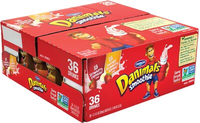 - A 36-Pack of Dannon Danimals Smoothies in Strawberry and Strawberry Banana Flavors
