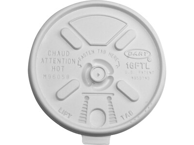 Dart® Reclosable lid in white color has optima reclosable tab to allows heat-retaining, lid-on sipping and tab lock that minimize potential for spills. Lip is suitable for 12 - 24 oz hot/cold foam cup and contemporary design, sold as 1000 per case.
