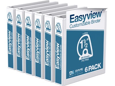 Davis Group Easyview Premium 1 1/2" 3-Ring View Binders, D-Ring, White, 6/Pack (8402-00-06)