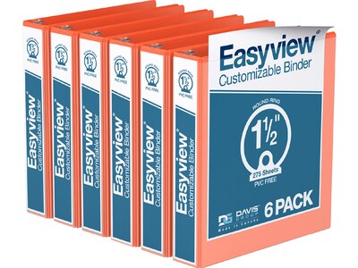 Davis Group Easyview Premium 1 1/2" 3-Ring View Binders, Orange, 6/Pack (8412-19-06)