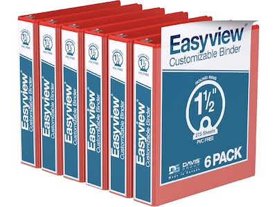 Davis Group Easyview Premium 1 1/2" 3-Ring View Binders, Red, 6/Pack (8412-03-06)