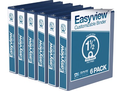 Davis Group Easyview Premium 1 1/2" 3-Ring View Binders, Royal Blue, 6/Pack (8412-92-06)