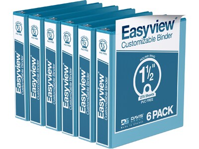 Davis Group Easyview Premium 1 1/2" 3-Ring View Binders, Turquoise Blue, 6/Pack (8412-52-06)