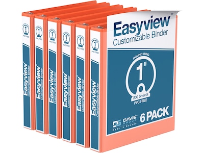 Davis Group Easyview Premium 1" 3-Ring View Binders, Orange, 6/Pack (8411-19-06)