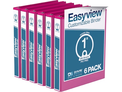 Davis Group Easyview Premium 1" 3-Ring View Binders, Pink, 6/Pack (8411-43-06)