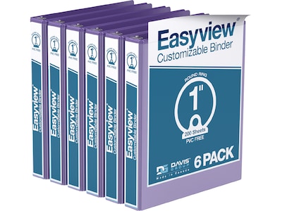 Davis Group Easyview Premium 1" 3-Ring View Binders, Purple, 6/Pack (8411-69-06)