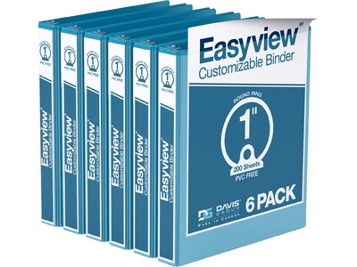 Davis Group Easyview Premium 1" 3-Ring View Binders, Turquoise Blue, 6/Pack (8411-52-06)