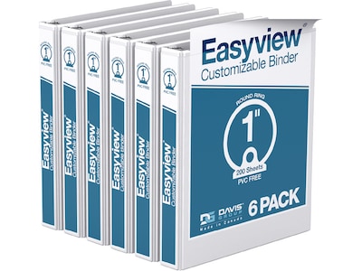 Davis Group Easyview Premium 1" 3-Ring View Binders, White, 6/Pack (8411-00-06)