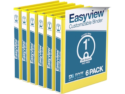 Davis Group Easyview Premium 1" 3-Ring View Binders, Yellow, 6/Pack (8411-05-06)