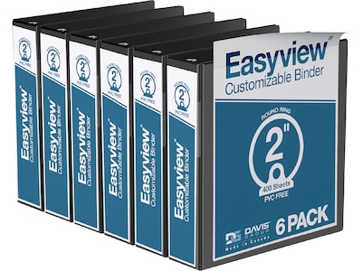 Davis Group Easyview Premium 2" 3-Ring View Binders, Black, 6/Pack (8413-01-06)