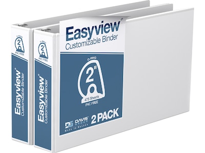 Davis Group Easyview Premium 2" 3-Ring View Binders, D-Ring, White, 2/Pack (8603-00-02)