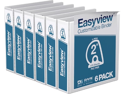Davis Group Easyview Premium 2" 3-Ring View Binders, D-Ring, White, 6/Pack (8403-00-06)