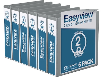 This Davis Group Easyview Premium customizable view binder is perfect for presentations, manuals, projects, reports, and more. The front cover, spine, and back cover feature an ink transfer resistant clear overlay, allowing you to customize each binder and make it your own. Complete with clear interior front and back cover pockets for loose document security. Back-mounted rings allow pages to lie flat. Made of PVC-free polypropylene material for enhanced durability. 100% recycled board with 85% post consumer waste.