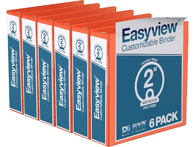 Davis Group Easyview Premium 2" 3-Ring View Binders, Orange, 6/Pack (8413-19-06)
