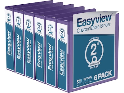 Davis Group Easyview Premium 2" 3-Ring View Binders, Purple, 6/Pack (8413-69-06)
