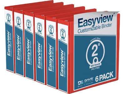 Davis Group Easyview Premium 2" 3-Ring View Binders, Red, 6/Pack (8413-03-06)