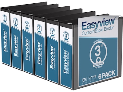 Davis Group Easyview Premium 3" 3-Ring View Binders, Black, 6/Pack (8414-01-06)