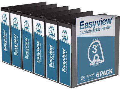Davis Group Easyview Premium 3" 3-Ring View Binders, D-Ring, Black, 6/Pack (8405-01-06)