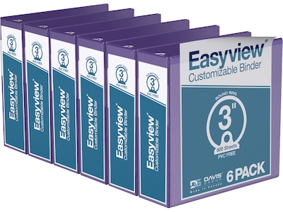 Davis Group Easyview Premium 3" 3-Ring View Binders, Purple, 6/Pack (8414-69-06)