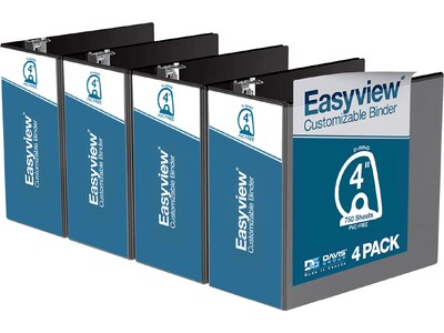 Davis Group Easyview Premium 4" 3-Ring View Binders, D-Ring, Black, 4/Pack (8406-01-04)