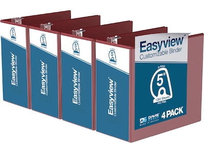 Davis Group Easyview Premium 5" 3-Ring View Binders, D-Ring, Burgundy, 4/Pack (8407-08-04)