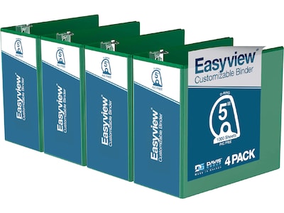 Davis Group Easyview Premium 5" 3-Ring View Binders, D-Ring, Green, 4/Pack (8407-04-04)