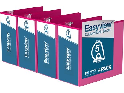Davis Group Easyview Premium 5" 3-Ring View Binders, D-Ring, Pink, 4/Pack (8407-43-04)