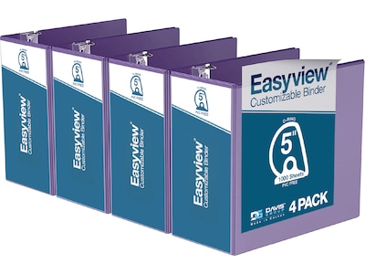 Davis Group Easyview Premium 5" 3-Ring View Binders, D-Ring, Purple, 4/Pack (8407-69-04)
