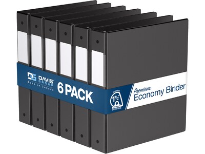 Davis Group Premium Economy 1 1/2" 3-Ring Non-View Binders, D-Ring, Black, 6/Pack (2302-01-06)