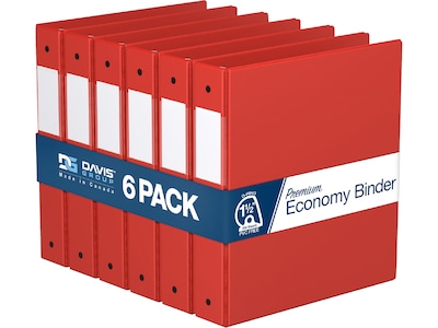 Davis Group Premium Economy 1 1/2" 3-Ring Non-View Binders, D-Ring, Red, 6/Pack (2302-03-06)