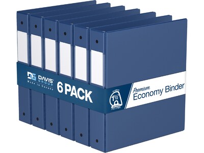 Davis Group Premium Economy 1 1/2" 3-Ring Non-View Binders, D-Ring, Royal Blue, 6/Pack (2302-92-06)