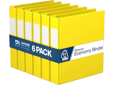 Davis Group Premium Economy 1 1/2" 3-Ring Non-View Binders, D-Ring, Yellow, 6/Pack (2302-05-06)