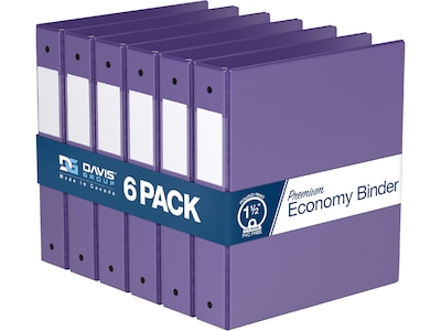 Davis Group Premium Economy 1 1/2" 3-Ring Non-View Binders, Purple, 6/Pack (2312-69-06)