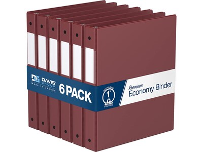 Davis Group Premium Economy 1" 3-Ring Non-View Binders, Burgundy, 6/Pack (2311-08-06)