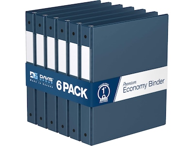 Davis Group Premium Economy 1" 3-Ring Non-View Binders, Navy Blue, 6/Pack (2311-72-06)