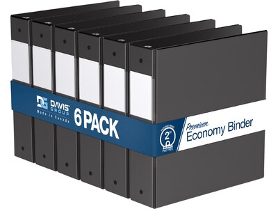 Davis Group Premium Economy 2" 3-Ring Non-View Binders, Black, 6/Pack (2313-01-06)