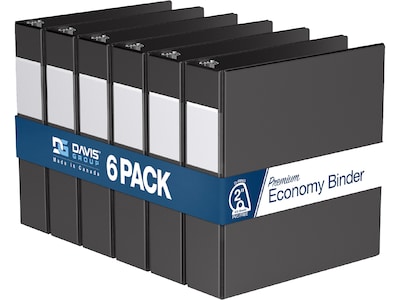 Davis Group Premium Economy 2" 3-Ring Non-View Binders, D-Ring, Black, 6/Pack (2304-01-06)