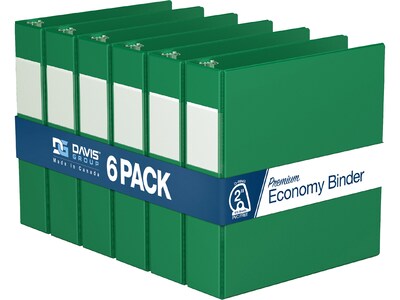 Davis Group Premium Economy 2" 3-Ring Non-View Binders, D-Ring, Green, 6/Pack (2304-04-06)
