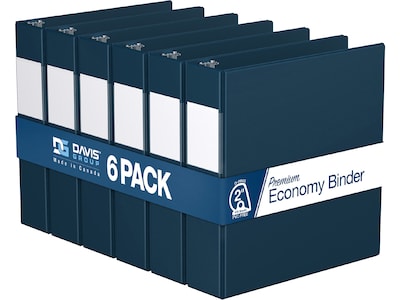 Davis Group Premium Economy 2" 3-Ring Non-View Binders, D-Ring, Navy Blue, 6/Pack (2304-72-06)