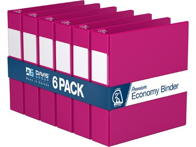 Davis Group Premium Economy 2" 3-Ring Non-View Binders, D-Ring, Pink, 6/Pack (2304-43-06)