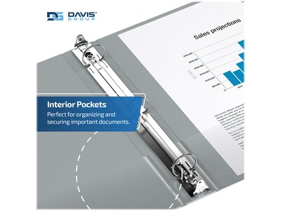 This Davis Group Premium Economy binder features a clear interior pocket on the front and back covers to secure loose documents and allow for easy identification of contents. Perfect for conferences, references, colleges, and universities. Features a full-width label holder on the spine. Made of PVC-free polypropylene for enhanced durability. 100% recycled board with 85% post consumer waste.