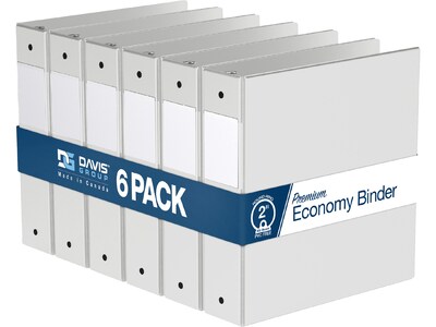 Davis Group Premium Economy 2" 3-Ring Non-View Binders, White, 6/Pack (2313-00-06)